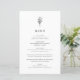 Customizable floral minimalist wedding menu card. It features a black modern floral bouquet line art with a pinstripes pattern. Personalize by adding date and meal choice. This minimalist floral menu card is perfect for weddings, baby showers, bridal showers, birthdays, and so much more.