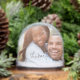 A beautiful gift for newlyweds, this snow globe provides the option for front and back photos. Customize the globe by adding the name of the couple, while the back provides a date and special quote in black text for their special day.