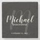 Black Modern Script Personalized Groomsmen Stone Coaster