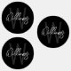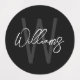 This design features personalized name in white modern handwriting script font style and monogram in grey modern sans serif font style as background, on black background.