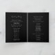 Welcome to our Black Modern Script Wedding Folded Program design, where modern minimalism meets the artistry of calligraphy. This curated aesthetic brings an air of sophistication to your special day- with a twist of boho, casual charm. The combination of simple typography with a stylish script font adds a unique personality to your wedding. This classic design offers a timeless, polished look that's perfect for spring, summer, fall, or winter weddings. A simple understated palette of black backdrops and white text creates the perfect neutral backdrop for your celebration. Make your wedding truly elegant with our lovely Modern Script collection. As with all of our designs, if you have any questions or special requests, please just ask.