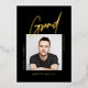 Celebrate your Graduate with this Photo Black Modern Simple Graduate Foil Invitation designed in black, with a central photo, "Grad" and details in Gold Foil. This clean invitation is perfect for a male graduate, your son graduating from college.