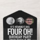 Bold simple mono graphic black and white photo template all-in-one 40th birthday party invitation. Personalize this detachable milestone birthday invitation with your own birthday party event details, and up to four different photos of the birthday boy or girl. Invite comes with a simple RSVP detachable reply card where you can also request a song to dance to or ask for any dietary or special requirements if required. Simple three photo circles for your now and then photos from the past 40 years. Other colours and matching items are available. © Original design by Sarah Trett for www.mylittleeden.com on Zazzle.