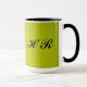 This is a Dean Johnson Fine Art design gradient monogram black on green. This mug has a black monogram on a green background with a black border . This monogram is ready for customizing. monogram on a green background