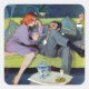 Artist: Lynn Buckham | A woman in a purple dress and a man in suit sitting on a green couch.