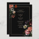 Make a bold statement with this Black Moody Wedding Invitation, featuring vibrant and dramatic floral artwork set against a deep black background. Perfect for couples seeking a unique and sophisticated aesthetic, this design blends rich, realistic florals with a modern edge.