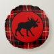 Black Moose, Red Plaid Cabin Round Pillow