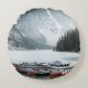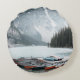 BLACK MOUNTAIN COVERED WITH SNOW UNDER GREY SKY ROUND PILLOW