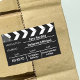 A unique wedding save the date sticker with movie theme. Add your names, wedding date, time and venue on the black clapboard.