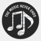 Celebrate your love for music with "The Music Never Stops" sticker. Featuring two musical notes filled with sheet music, this design perfectly captures the endless rhythm of melody and passion. Whether you're a musician, a music lover, or just appreciate the beauty of sound, this sticker is perfect for decorating laptops, water bottles, notebooks, and more. Let the world know that the music plays on, no matter what.