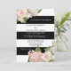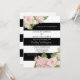 Black n White Striped w Pink Hydrangeas Wedding Invitation