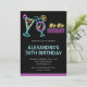 Black Neon Glow Cocktail Martini 34th birthday Invitation