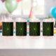 Black neon green spider web Halloween pattern Can Glass. Drinkware with Spooky Halloween cobweb gothic design and custom black background.