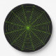 Black neon green spider web Halloween pattern Paper Plate