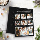 Bring in the new year with this unique Black New Year Photo Holiday Card. This trendy card includes 'A Year To Remember' in a stylish vintage typewriter font, 8 family photos, and text on the back for personalizing. White text on a black background.