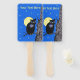 This program hand fan has a black night owl with blue eyes sitting on a branch in a black tree in a dark blue night sky with full yellow moon and stars on the front and back. Customize your text with the template.