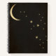 Black night sky gold crescent moon stars notebook