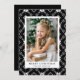 Festive holiday card featuring your vertical photo framed in white with a black and white nordic snowflake patterned background. Personalize the nordic snowflake Christmas card with your custom greeting and family name in black lettering. The card reverses to display your personal message.