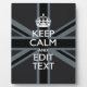Your personalized Keep Calm saying on a bold black on black union jack decor. A personalized Keep Calm style saying on a one of a kind gift for someone special on your list. Humourous or whimsical try on your creative words on two editable lines of text. Remember to use CAPITAL letters for best results.