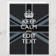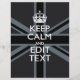 Your personalized Keep Calm saying on a bold black on black union jack decor. A personalized Keep Calm style saying on a one of a kind gift. Humourous or whimsical try on your creative words on two editable lines of text. Remember to use CAPITAL letters for best results.