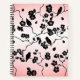 Black on Pink Pattern Birds and Cherry Blossoms Notebook
