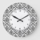 Black on White Damask Pattern Large Clock