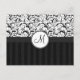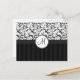 Black on White Floral Wisps, Stripes & Monogram Postcard