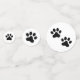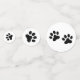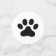 Confetti featuring printed black pet paw prints on a white background. Change paw print and background colour in the design tool.