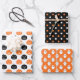 A trio of designs for your Halloween gift. This set includes a black background with orange and white polka dot design, orange and black pumpkin design and a orange background with ghost design. View our full line of gift wrap products in our Zazzle store.