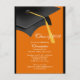 Black Orange Grad Cap Graduation Party Invitation Postcard