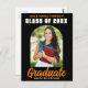 This modern orange and black custom senior photo graduate announcement postcard features your high school or college name for the class of 2025. Customize with your name under the chic, bold handwritten script and trendy arch for a great personalized graduation postcard.