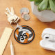 This black, orange and white volleyball keychain for girls features a black, orange and white volleyball graphic that has a girly floral kaleidoscopic pattern blended with the black and orange volleyball panels and an abstract swirl pattern blended with the white panels - her name and jersey number are customizable in black - by katz_d_zynes | see more custom volleyball team colours keychains in katzdzynes' Volleyball keychains collection >>> https://www.zazzle.com/collections/119042498553482541