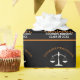 This modern black and orange custom law school graduation party wrapping paper features classy typography for a class of 2025 graduate. Customize with your graduating year under the white scales of justice for great personalized lawyer or attorney gifts.