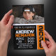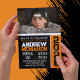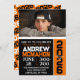 Black & Orange Vertical Modern Graduation Photo Invitations