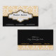 Black orange white damask interiors business card, featuring an orange and white damask pattern. The bottom part is of solid black colour. A black and an orange stripe separate the two parts. Your company/name is typed on an elegant damask label with black and orange outline.
