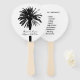 Black and white palm tree beach wedding ceremony program order Hand Fan . Add your own personalized wedding ceremony itinerary timeline schedule. Classy script typography template for couple getting married and guests. Personalize with name and order. Great for summer or destination wedding in exotic climate. Elegant palm tree silhouette design.