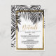 Elegant, chic, and modern tropical beach faux printed gold outline and black palm tree frond leaves on white with faux printed gold sequin typography, Wedding information details card. This classic and sophisticated design is perfect for the classy, stylish, and trendy graduate. Personalize with your own message on the front and a customized monogram initial on the back. All photo print design.