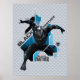 Black Panther crouches with arms outstreched in this high-tech graphic with tribal pattern edges that reads: Black Panther, King of Wakanda.