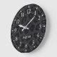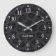 Add your name or family name to a black panther or black leopard fur animal print with spots over a dark grey background. Grey numbers for the hours and marks for each minute to match the grey clock hands, or choose black.