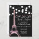 Black Paris Eiffel Tower Glitter Lights Sweet 16 Invitation