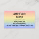 This business card design features a pattern of lines (or stripes) coloured various pastel colours, with black lines in between them. The front also features a dark-coloured rectangular shaped area containing a name and a profession/role/title/position that can both be personalized. The back features a simple design including a name, a profession/role/title/position, and contact info that can be personalized. This business card design might be used by a nail artist, a cosmetologist, a painter, or an interior decorator. [~Z0000061]