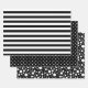 Three patterns in black and white: basic stripes, polka dots and random spots.