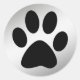 BLACK PAW PRINT ON SILVER CLASSIC ROUND STICKER