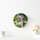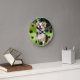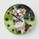 Round wall clock you can personalize with a photo of your pet. Instead of numbers, the hours are marked with black paw prints.