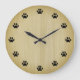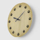 Black Paw Prints as Numbers Rustic Wood Background Large Clock