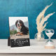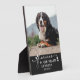 Honour your beloved pet who has passed away with this plaque you can personalize with a photo of your pet. Forever in our hearts is printed at the bottom of the photo with four cute paw prints in white on black. Add name and years living too.