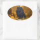 Beautiful persian or long haired black cat in an autumn coloured setting with pumpkins and daisies cat lovers Halloween oval stickers