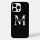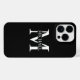 featuring personalized white monogram in classic serif font style with box of name in the middle of monogram on black background.