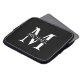 featuring personalized white monogram in classic serif font style with box of name in the middle of monogram on black background.