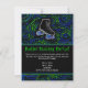 Fun and festive roller skating birthday party, skate party invitation features black roller skate with neon green and blue circles swirly background. Great for a general roller skating party, team or birthday for any age boys or girls. Add the guest of honour's name, event details and party title on the front, and Customize all the text for your party! Black and blue with bright green accents design.